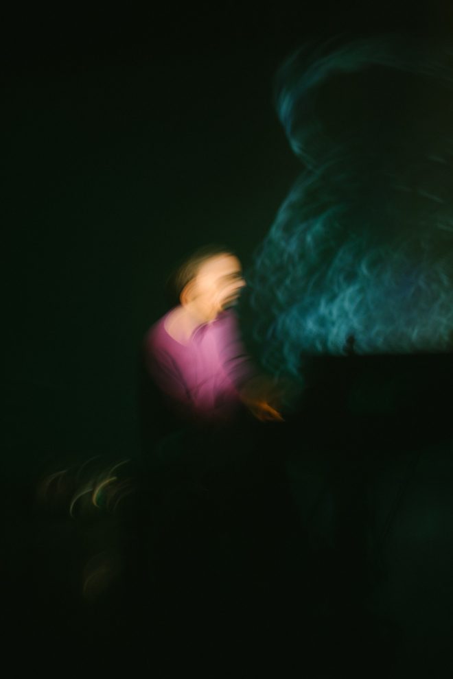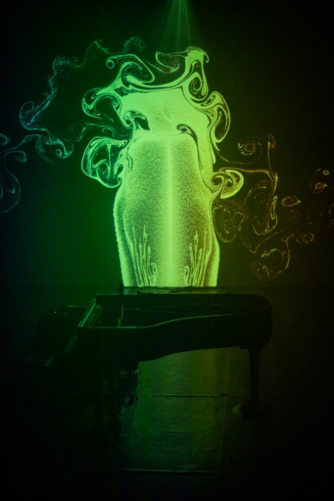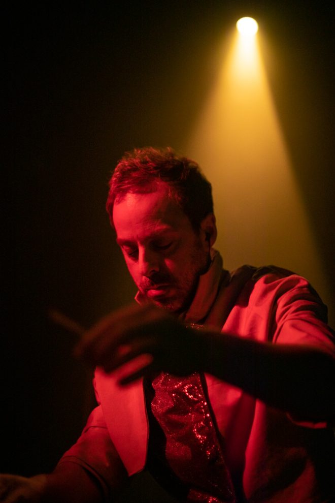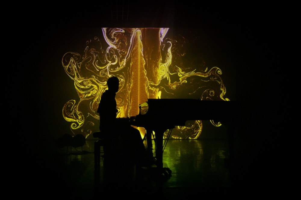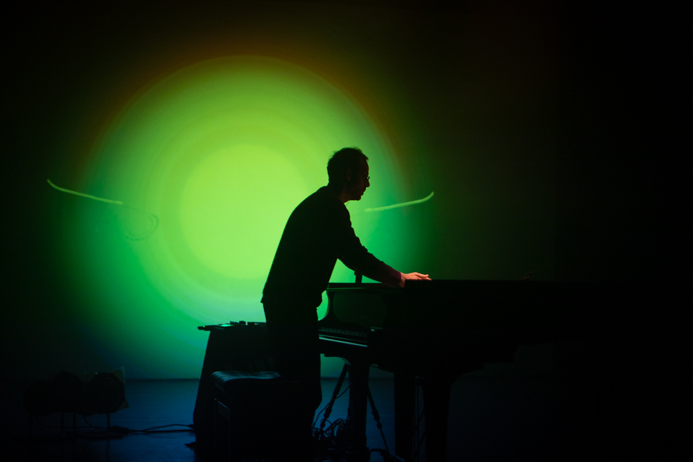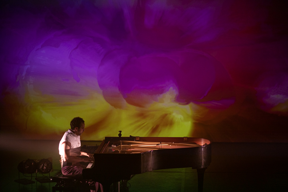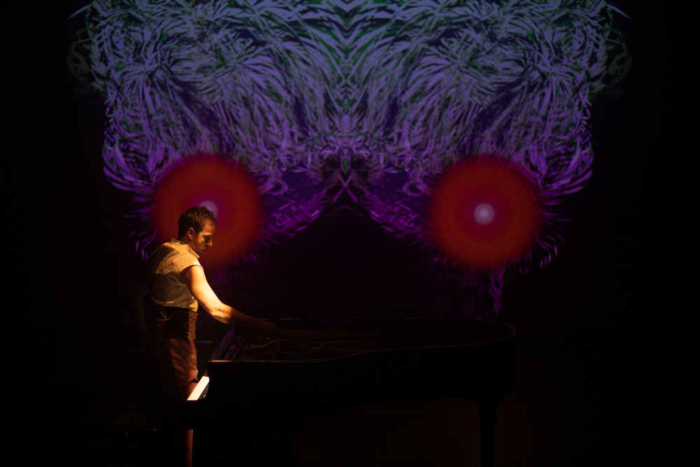 Registro fotográfico del estreno del nuevo proyecto discográfico de Juan J. Ochoa Something to remember junto a la artista visual Alba G. Corral en la sala Carme Teatre de Valencia.