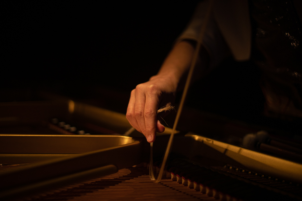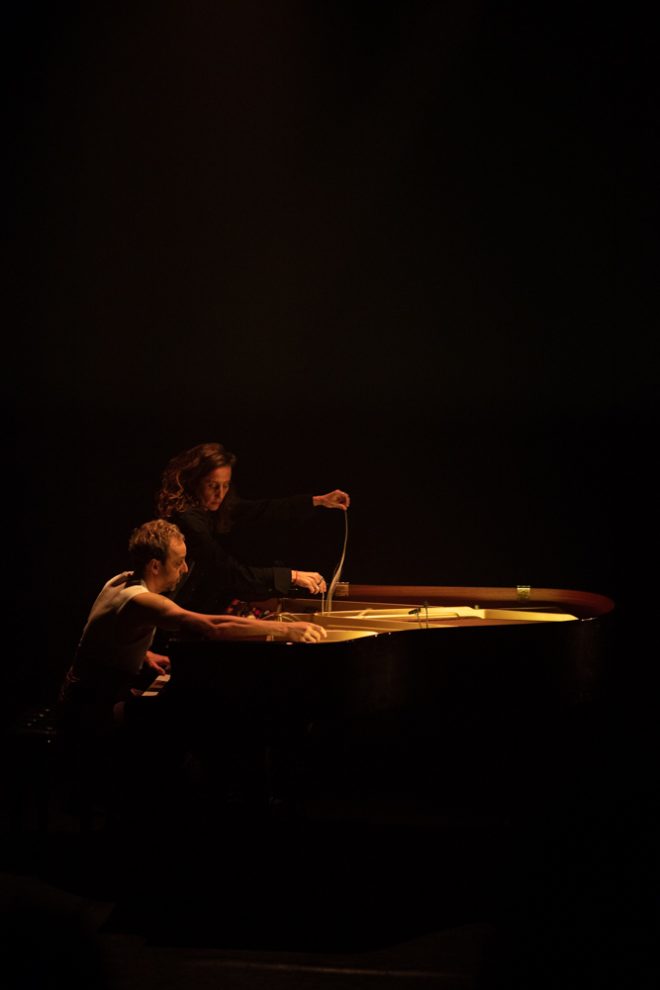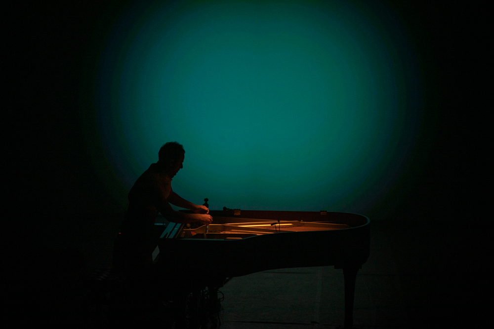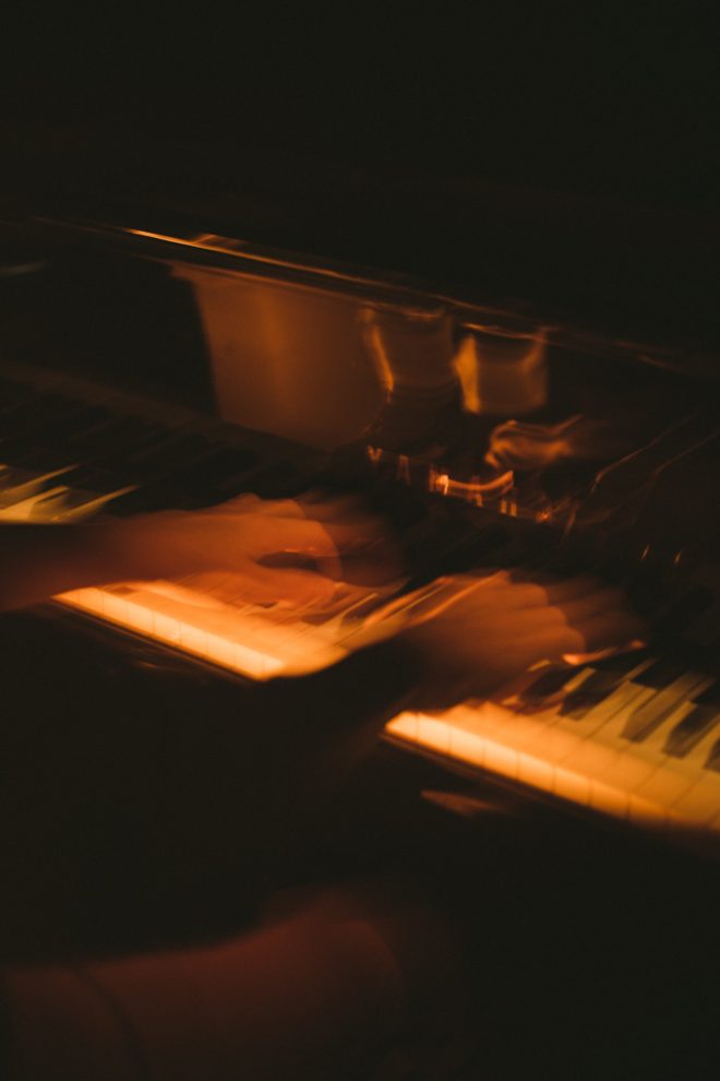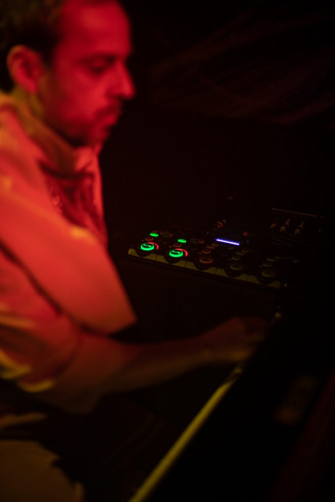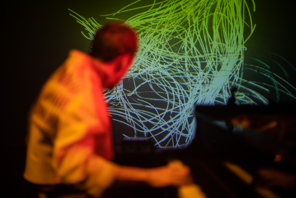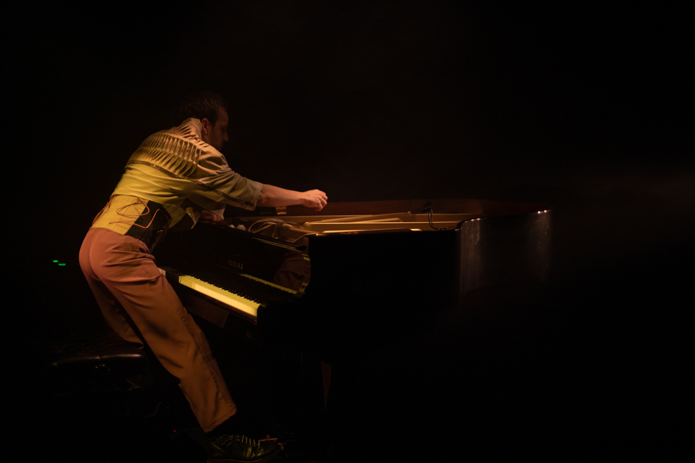 Registro fotográfico del estreno del nuevo proyecto discográfico de Juan J. Ochoa Something to remember junto a la artista visual Alba G. Corral en la sala Carme Teatre de Valencia.